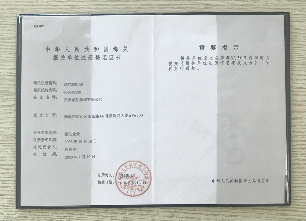 中华人民共和国海关报关单位注册登记证书